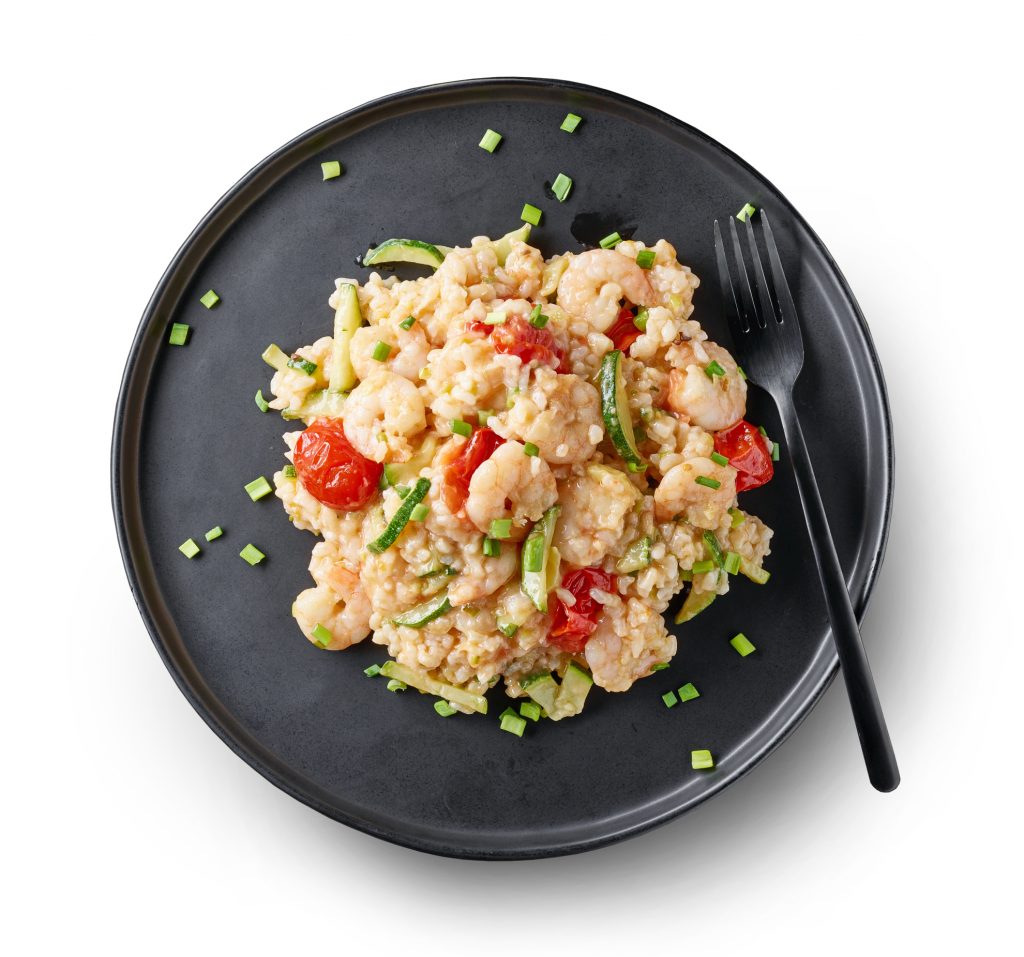 Calamar a la plancha con cherrys confitados y salsa de su tinta